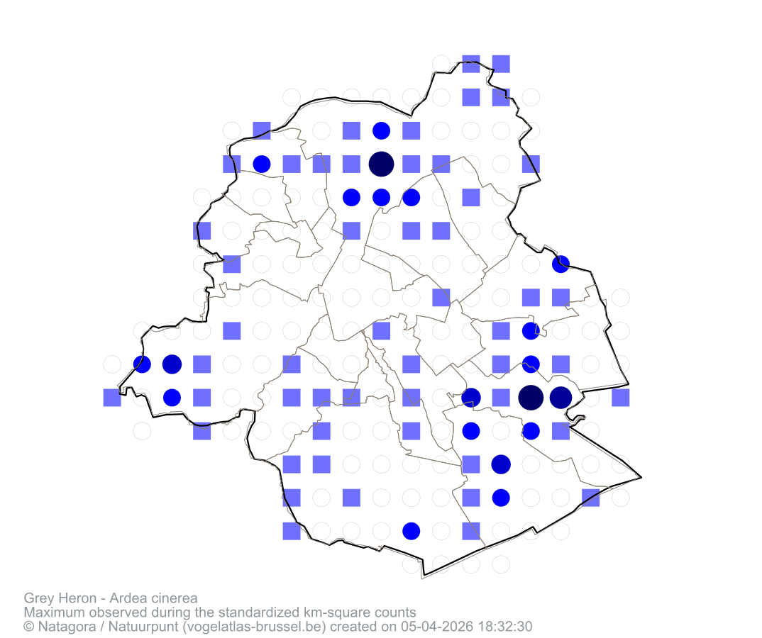 Maximum observed during the standardized km-square counts