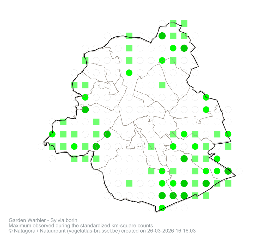 Maximum observed during the standardized km-square counts