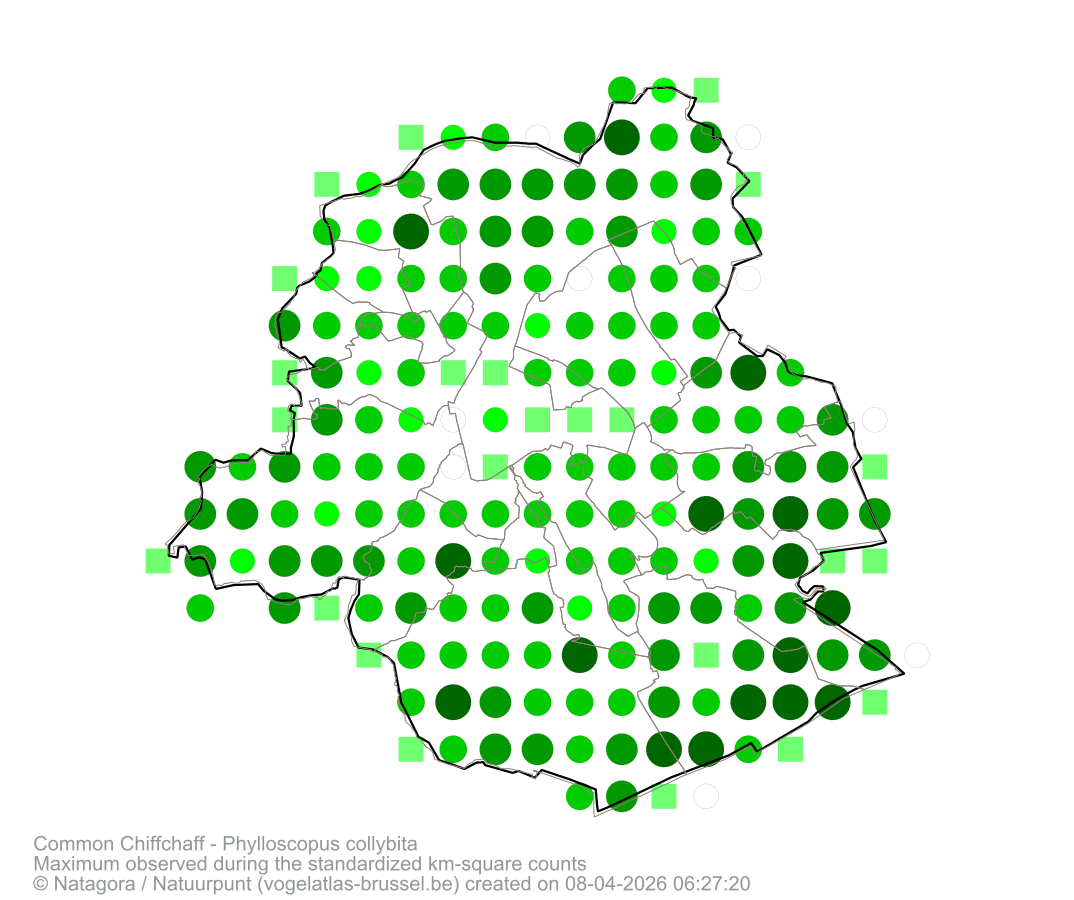 Maximum observed during the standardized km-square counts