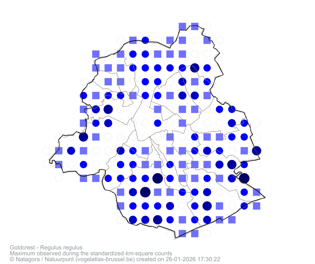 Maximum observed during the standardized km-square counts