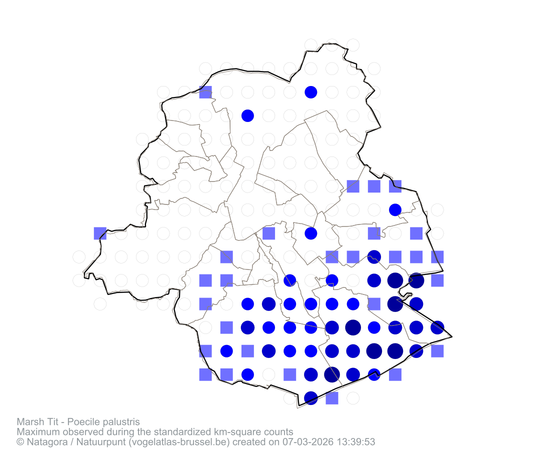 Maximum observed during the standardized km-square counts