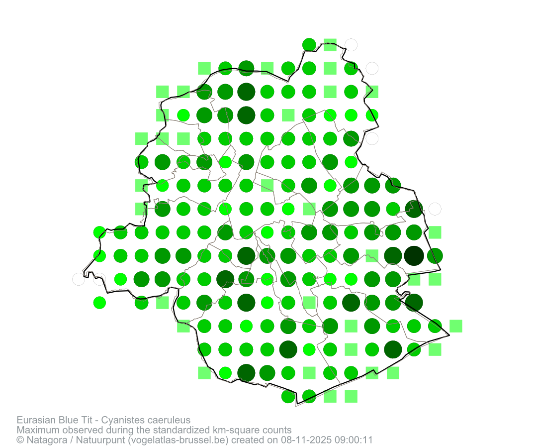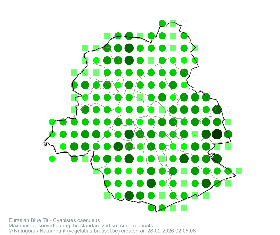 Maximum observed during the standardized km-square counts