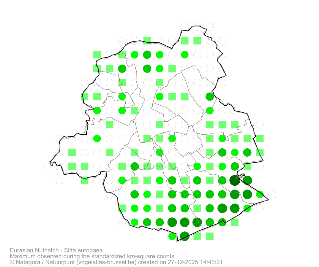 Maximum observed during the standardized km-square counts