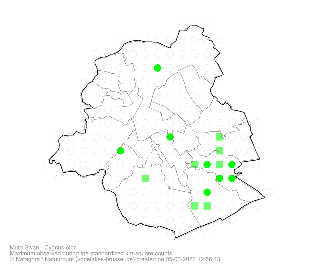 Maximum observed during the standardized km-square counts