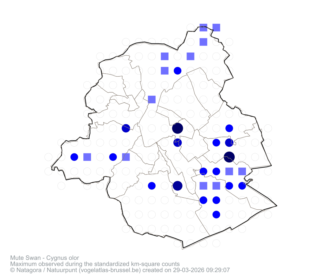 Maximum observed during the standardized km-square counts