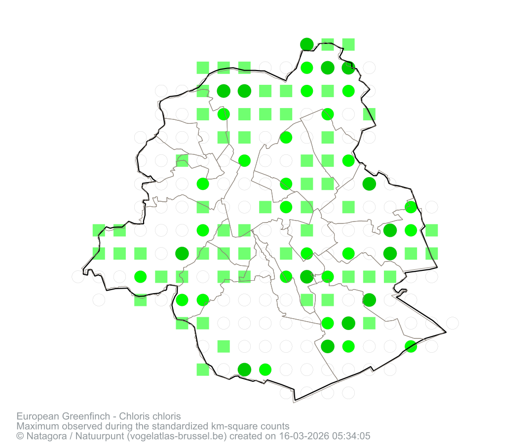 Maximum observed during the standardized km-square counts
