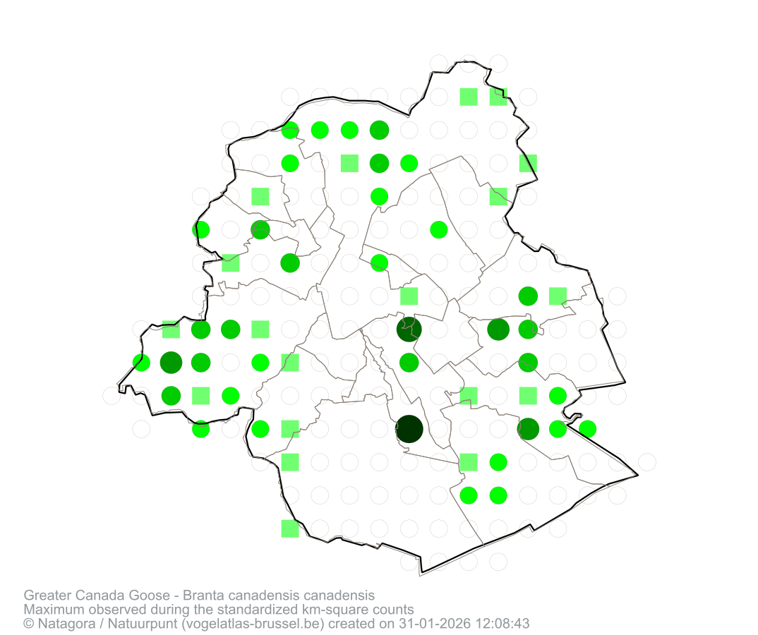 Maximum observed during the standardized km-square counts
