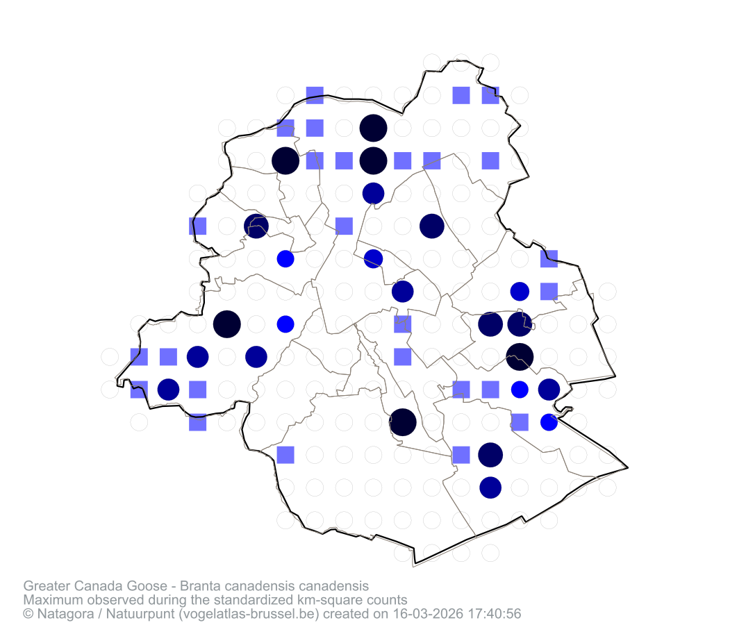 Maximum observed during the standardized km-square counts