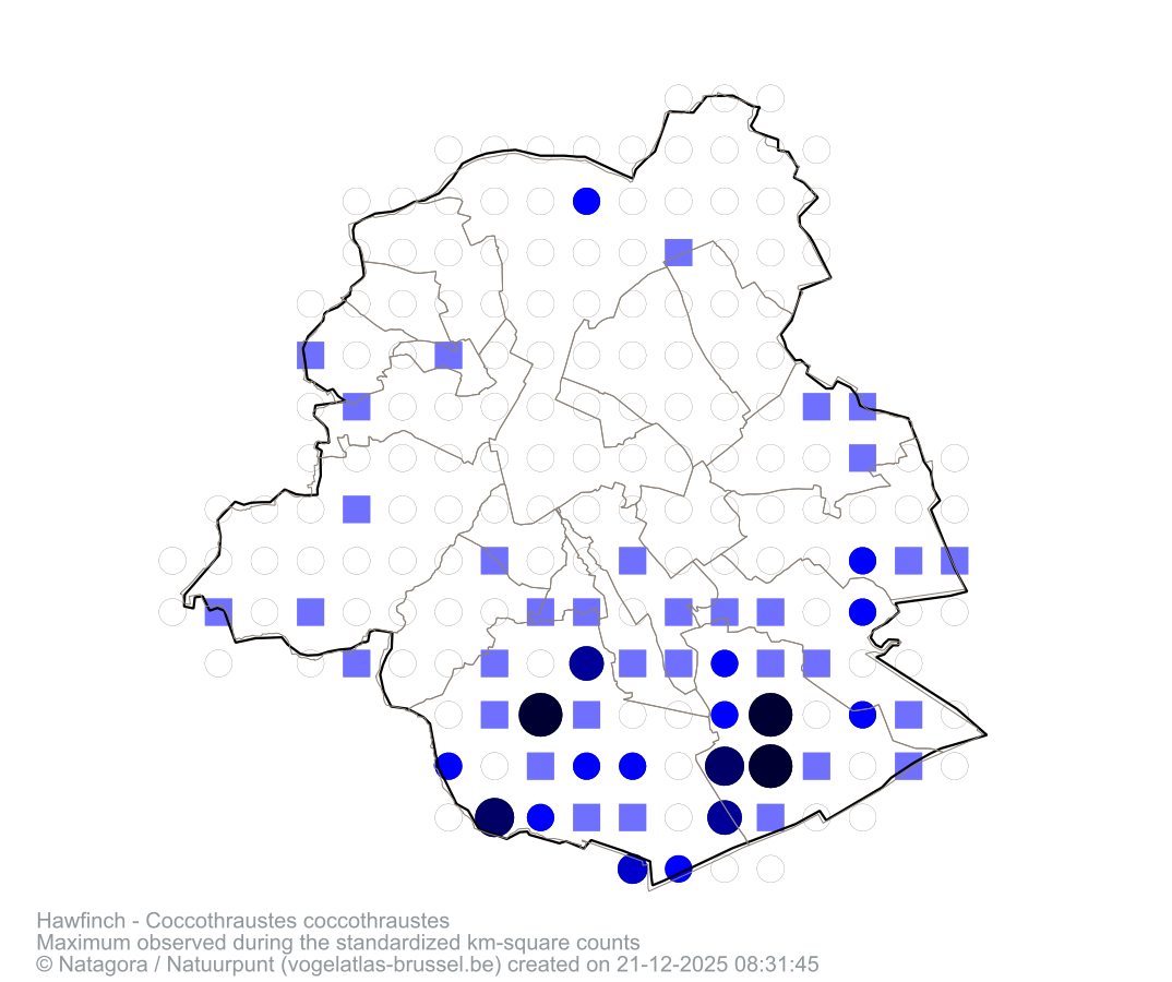 Maximum observed during the standardized km-square counts