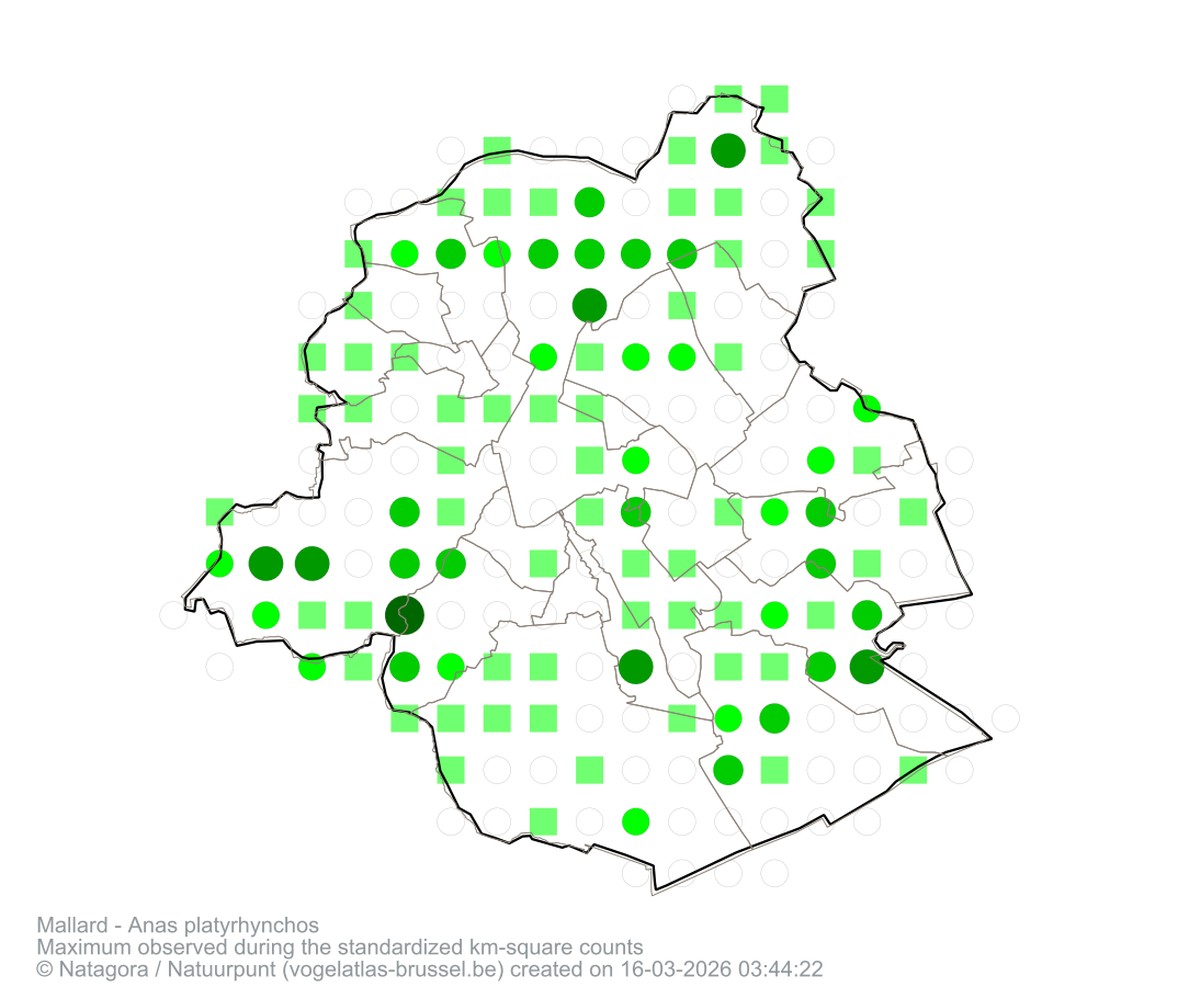 Maximum observed during the standardized km-square counts