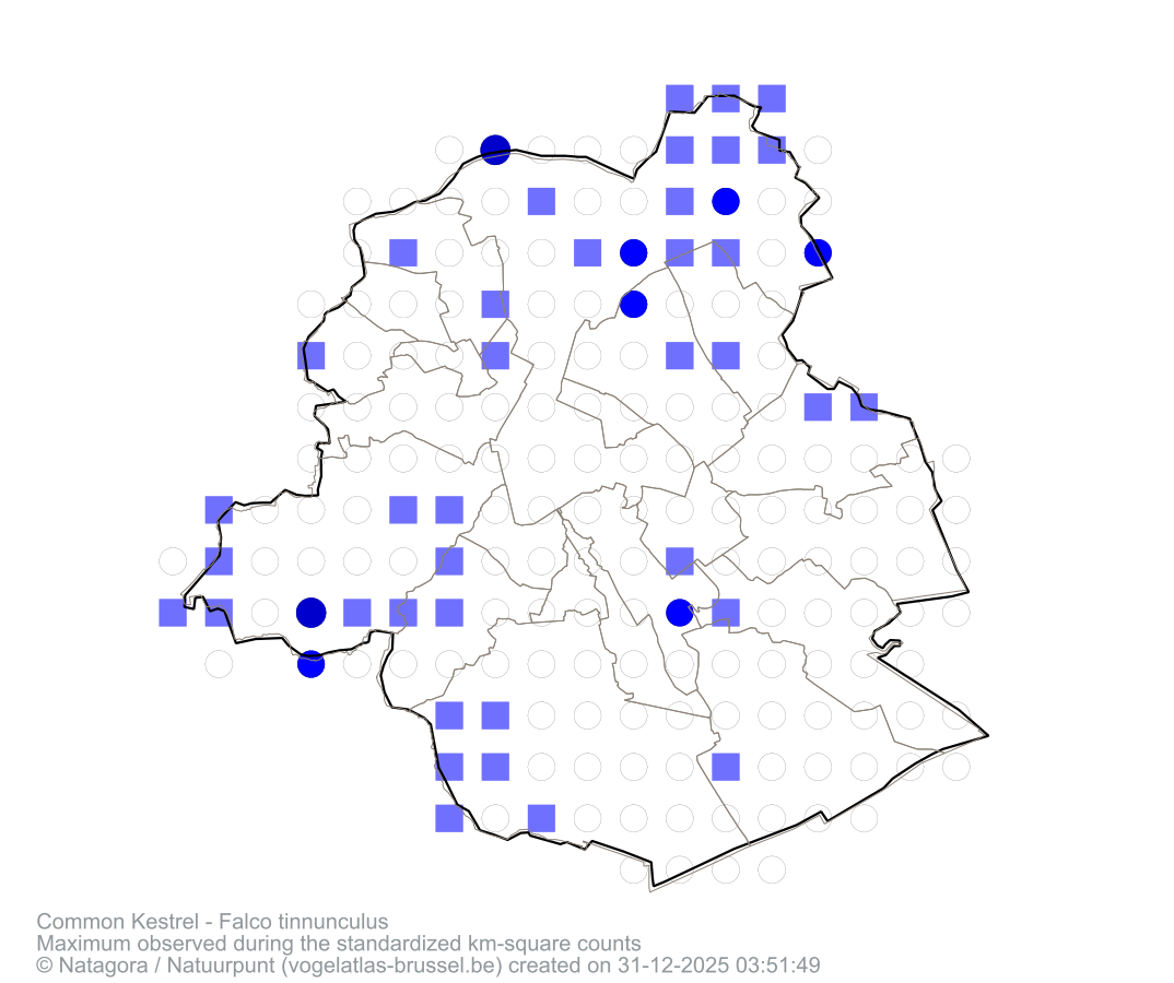 Maximum observed during the standardized km-square counts