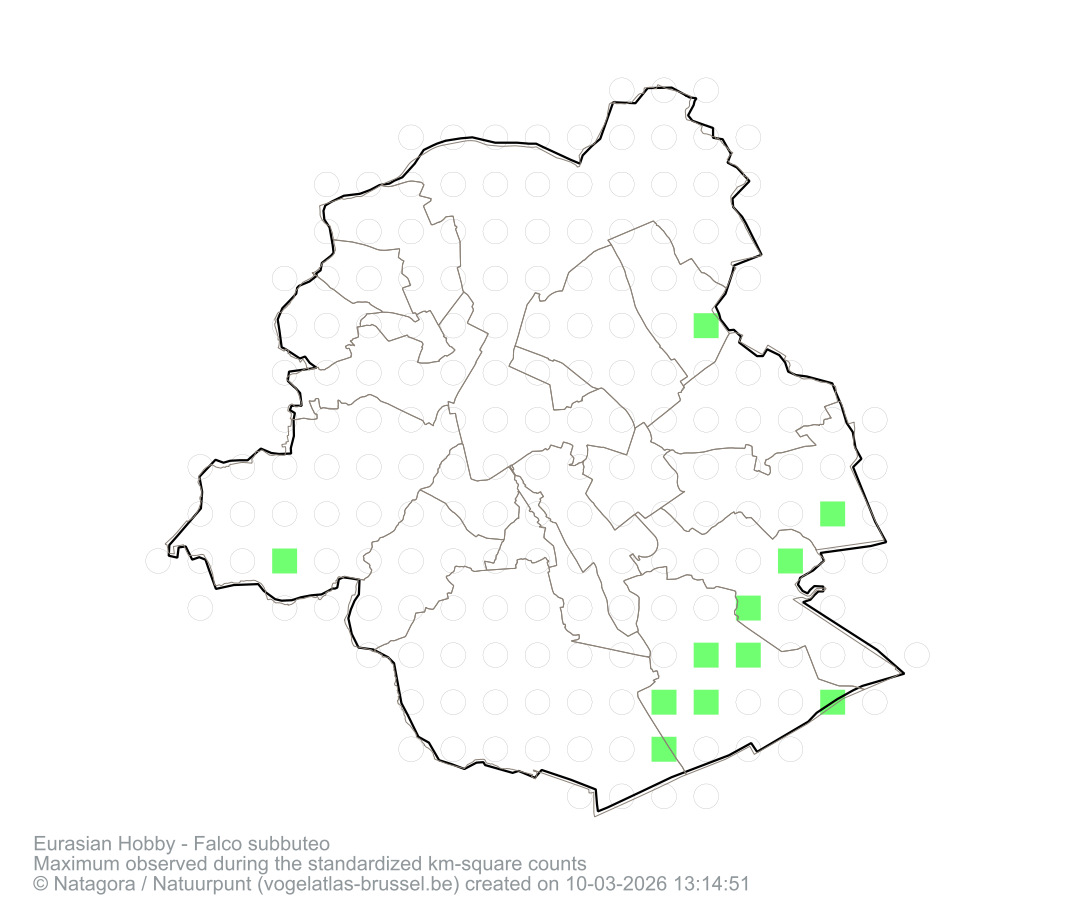 Maximum observed during the standardized km-square counts