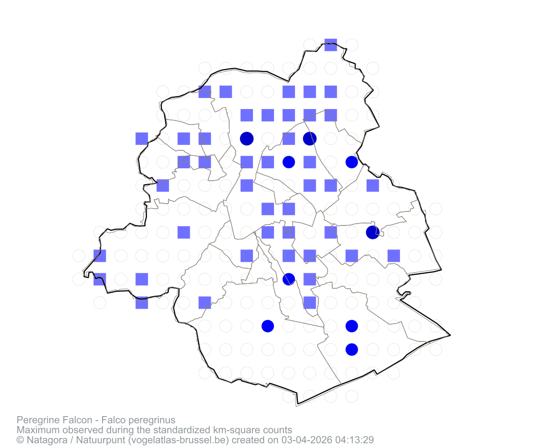 Maximum observed during the standardized km-square counts