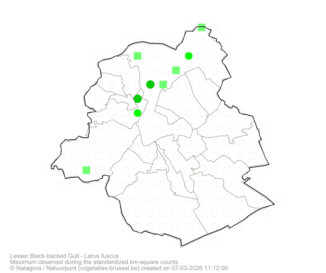 Maximum observed during the standardized km-square counts