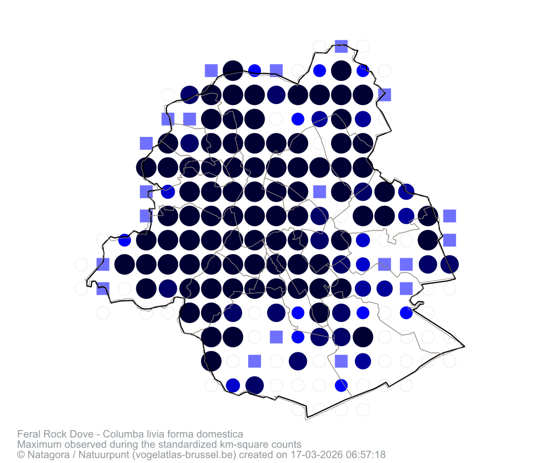 Maximum observed during the standardized km-square counts