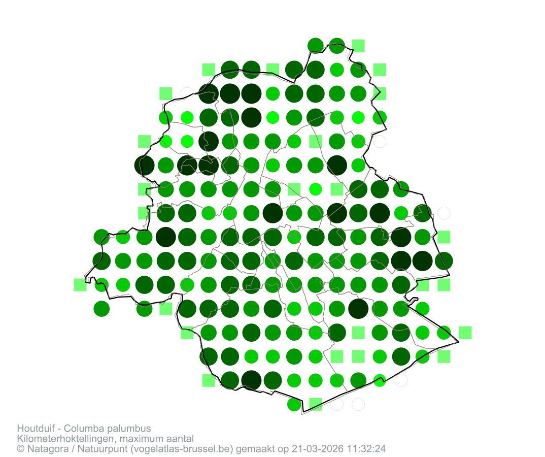Maximum observed during the standardized km-square counts