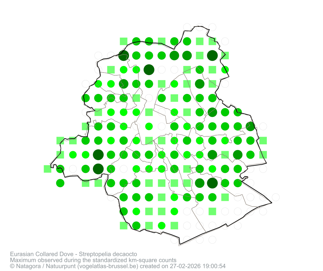 Maximum observed during the standardized km-square counts