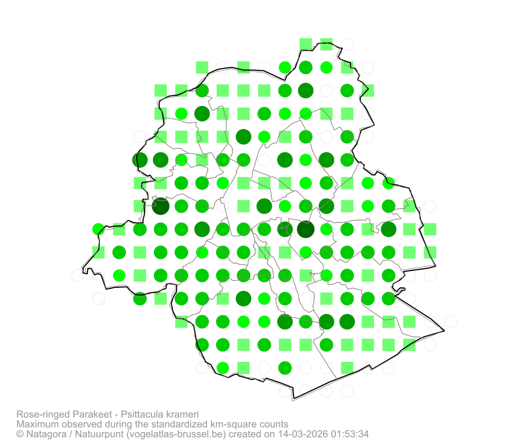Maximum observed during the standardized km-square counts