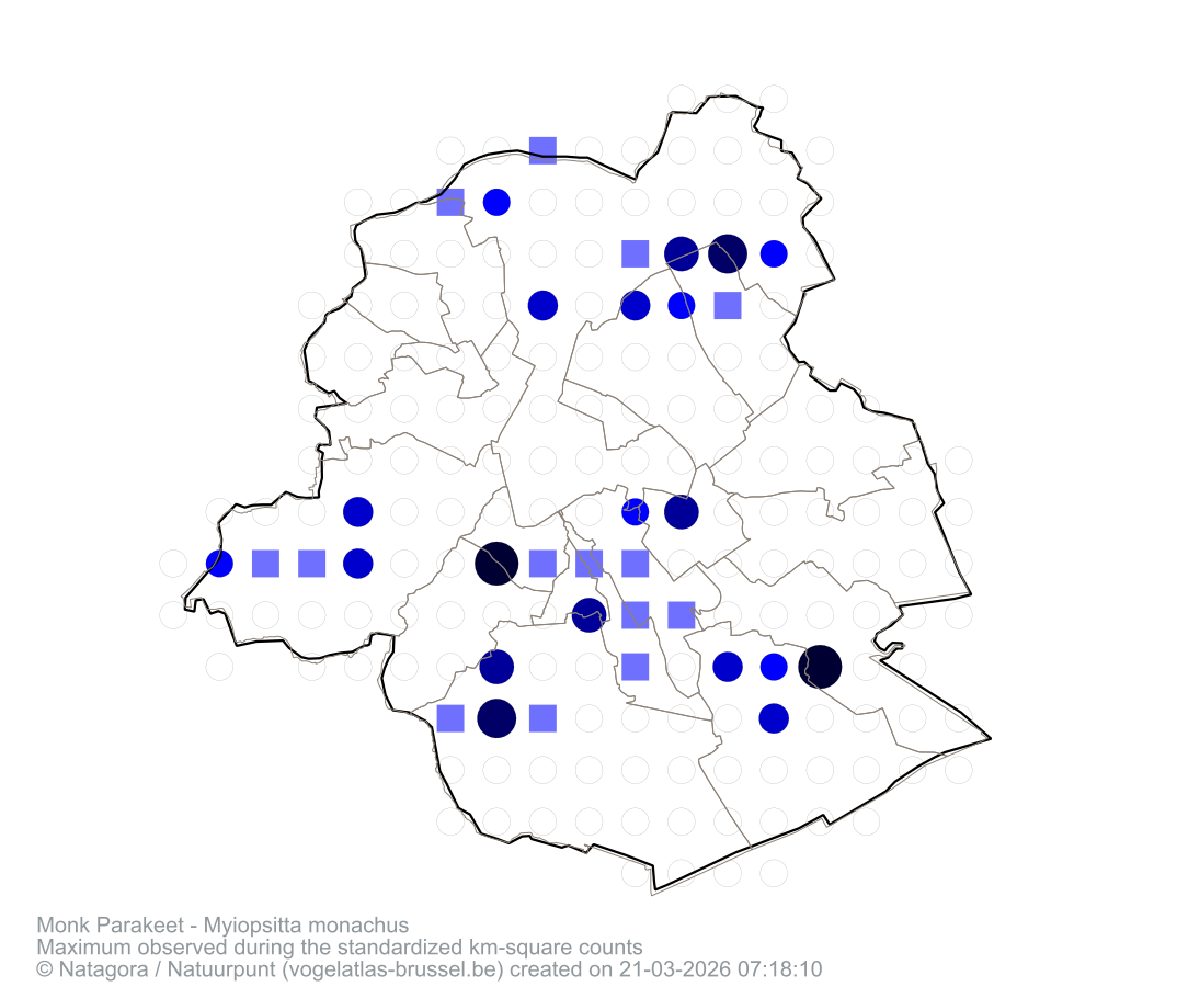 Maximum observed during the standardized km-square counts