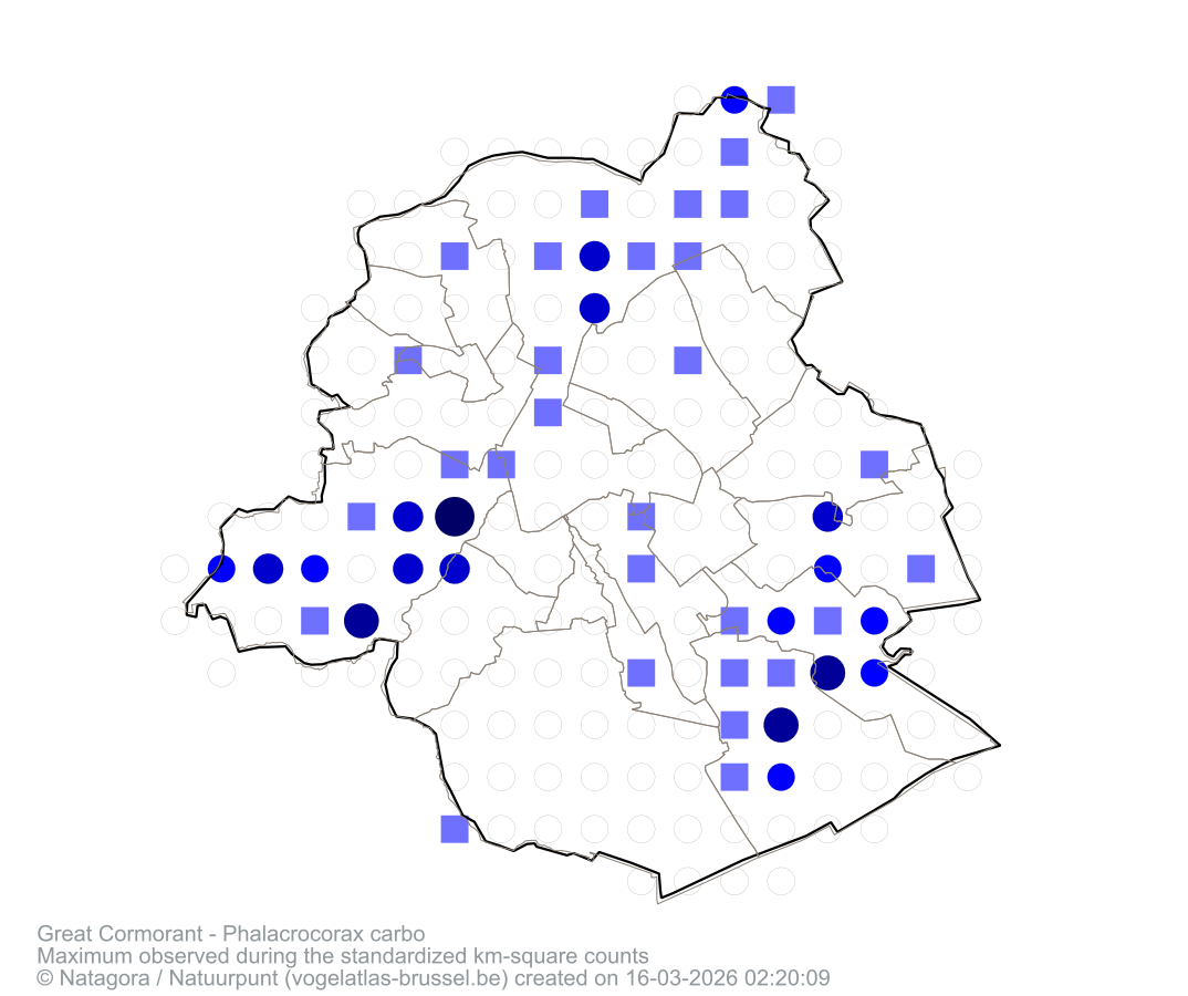 Maximum observed during the standardized km-square counts