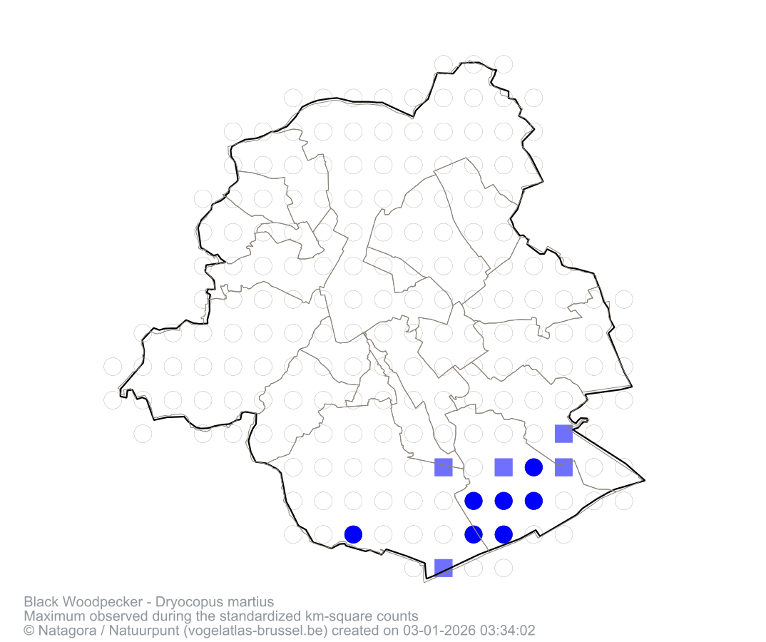 Maximum observed during the standardized km-square counts